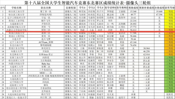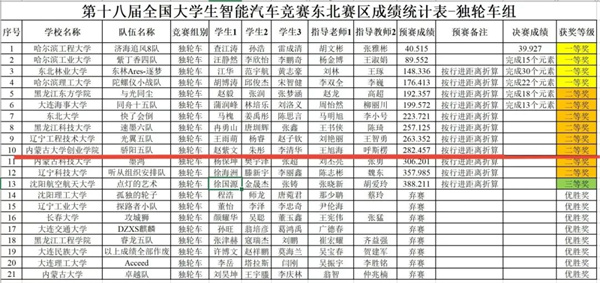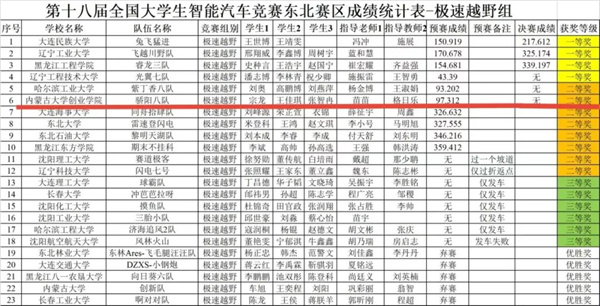 本次学院的6支参赛队伍、共计20名学生全部来自信息工程学院“骄阳之家”电子产品设计竞赛小组。每支队伍参与一个组别,奖项分别为声音信标组一等奖,摄像头三轮组二等奖,独轮组二等奖,极速越野组二等奖,负压电磁组二等奖,以及电能接力组三等奖。获得一等奖的队伍将代表学院参加全国总决赛。