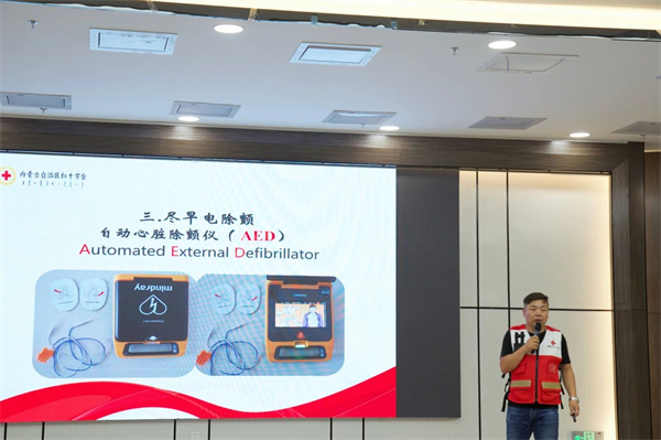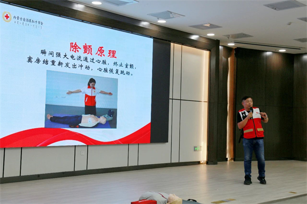 本次培训分为理论讲解和实践操作两部分。主讲王伟老师围绕应急救护“黄金四分钟”、心肺复苏与AED自动体外除颤器操作、气道梗阻判别与急救及校园突发意外伤害和疾病情况处置等急救知识进行系统讲解,并结合经典急救案例,分步进行操作示范。同学们以严谨认真的态度和饱满的热情,向培训老师师悉心请教,提高了应急救护意识与基本技能。