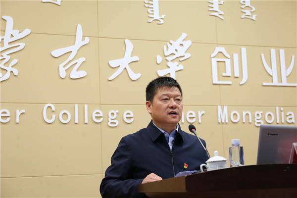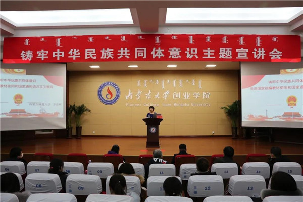 自治区宣讲团成员、内蒙古师范大学李春晖教授作《铸牢中华民族共同体意识 推进国家统编教材使用和国家通用语言文字教育》主题宣讲