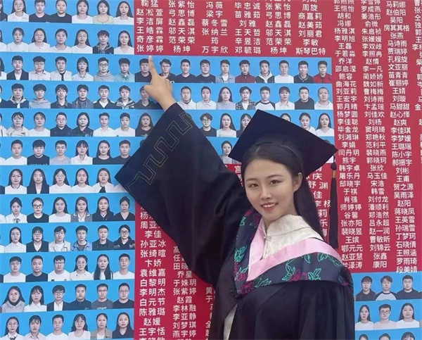 “看到这个照片墙的时候觉得很感动,因为上面有我们这届2000多个毕业生的照片,学院很用心,感受到了满满的爱,谢谢学院为我们这届毕业生设计暖心毕业墙。”金融学专业毕业生张书文说。