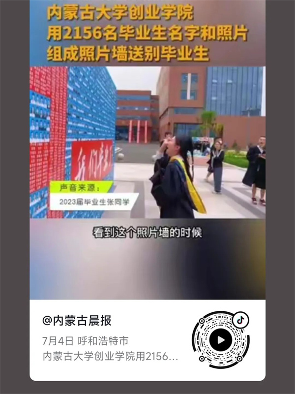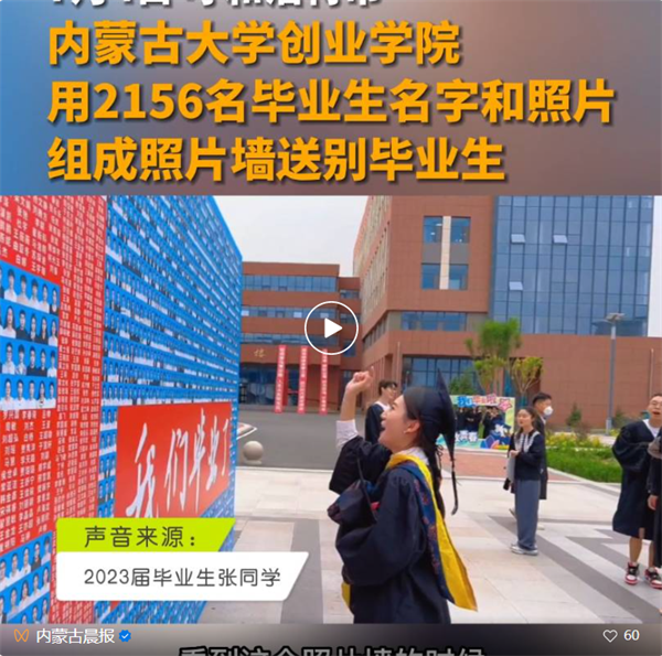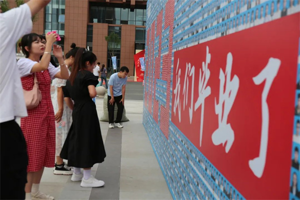 “这个毕业墙对于我们毕业生来说很有纪念意义,毕业典礼的时候我们还跟这个墙合影来着,希望大家都能前程似锦,毕业快乐!”新闻学专业毕业生富琪琪说。