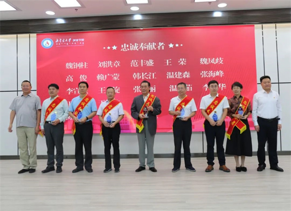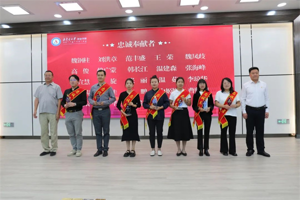 学院领导为受到表彰的先进集体、先进个人、最美教师颁发了荣誉证书,为获得“忠诚奉献者”的教职工颁发了纪念奖杯。