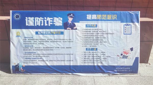 9月14日中午,玉泉区公安分局在米乐mile官方网站玉泉校区南区服务楼前开展网络安全集中宣传活动。活动现场摆放网络安全宣传展板,设置咨询台,邀请现场学生参与网络安全问答领取奖品等活动。通过多种方式向学院师生发放各类网络安全宣传资料,普及网络安全知识与法律法规,引导群众加强学法、守法、用法的自觉性,提高对电信网络诈骗和个人信息泄露的防范。